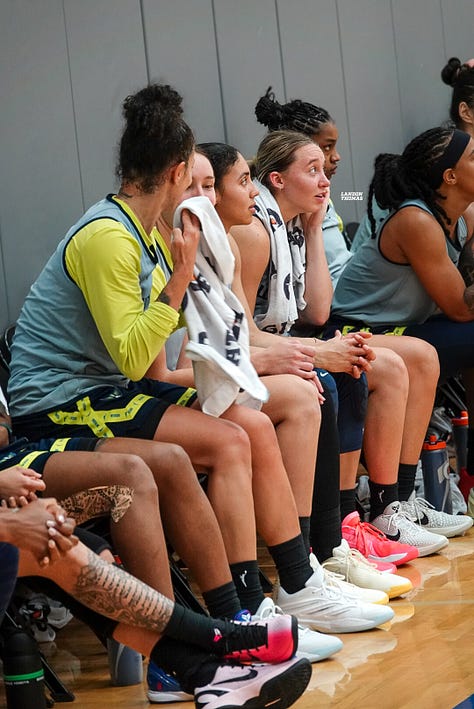 “I’m super excited. We got a lot of great pieces in free agency. We got Azzi (Fudd) too through the draft, and then we have training camp pickups. It’s just been really fun to compete… I think we have a lot of different pieces too in terms of versatility offensively, defensively. We got shooting, we got length, we got aggressive mentalities on the defensive end. I mean, we have a defensive player of the year (Alanna Smith), and we have Jess Shepard as one of the best playmakers in the league at the four position. So, um, and then to bring back Rike (Arike Ogunbowale), just to have the core pieces and then so many great pieces around it, it’s really exciting.”